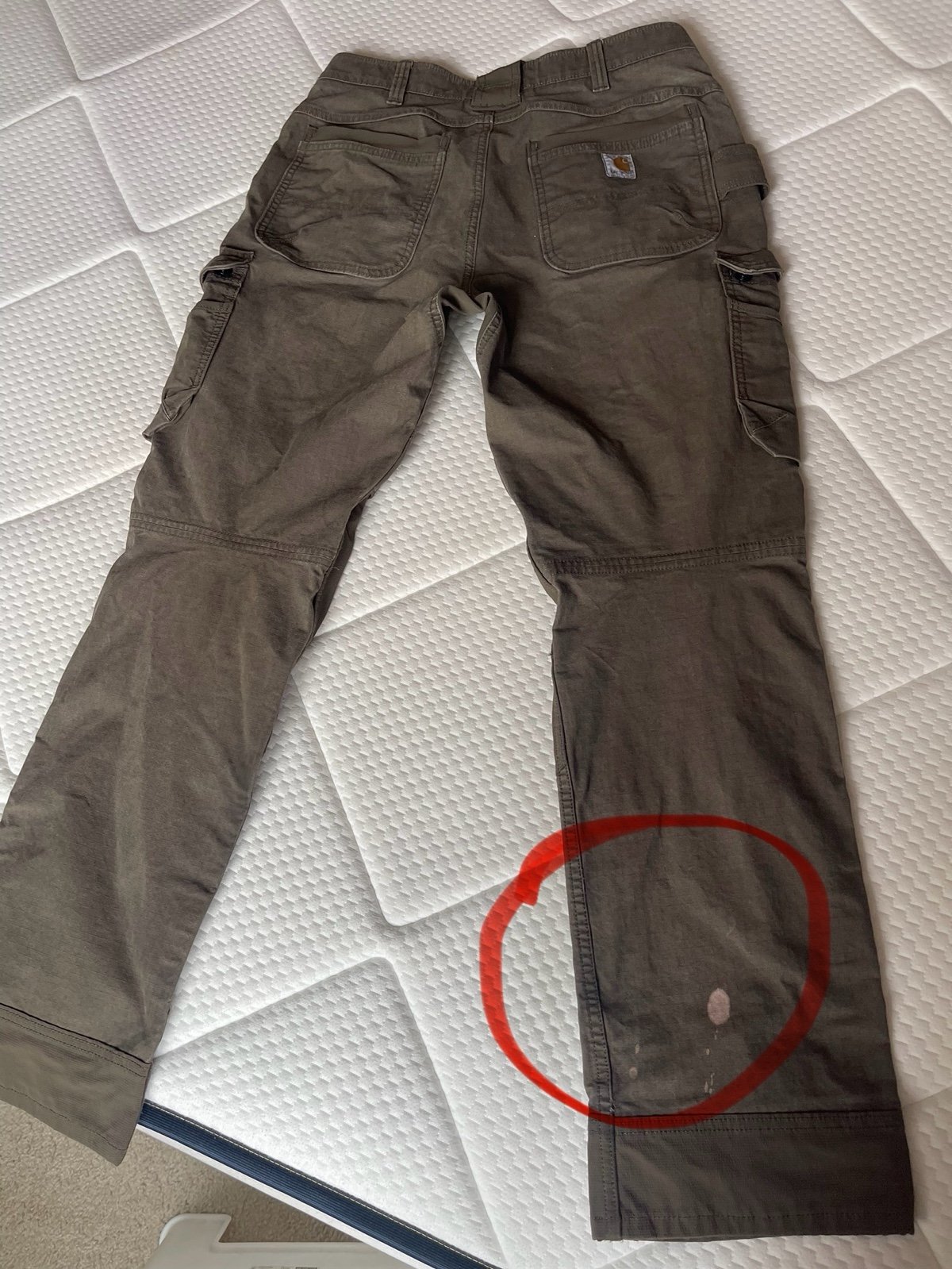 Carhartt STEEL RUGGED FLEX RELAXED FIT DOUBLE-FRONT CARGO WORK PANT flex steel cargo pants relaxed fit. Top loading secure knee pad pocket. Size men’s 34x32. Pre owned. Signs of wear. In good condition. Flaws are circled in red on the last photos. (Minor stains and holes) Still lots of love left. #Carhartt #workpants #cargo